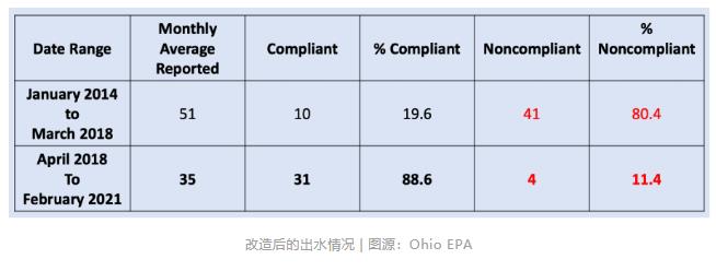 作者們介紹了俄亥俄州的兩個污水廠的案例,第一是Bradford村的污水廠。該污水廠出水總磷遇到了麻煩——在投產運行的前53個月里,只有9個月的總磷數據達標(<1mg/L)。