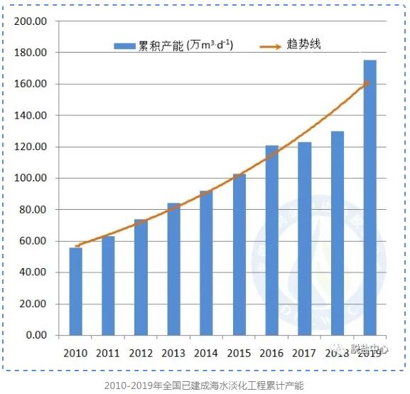 經(jīng)過四十多年的努力,在國家和地方政府的各項政策規(guī)劃積極推動下,我國的海水淡化技術(shù)和產(chǎn)業(yè)發(fā)展均取得了巨大的進(jìn)步,海水淡化應(yīng)用規(guī)模不斷增長,企業(yè)實力不斷壯大。據(jù)中國水利企業(yè)脫鹽分會不完全統(tǒng)計,截至2019年底,我國已建成日產(chǎn)淡水百噸(含)以上的海水淡化項目172個,產(chǎn)能達(dá)到175.29萬立方米/日。其中,2018-2019年新建成海水淡化工程29個,新增海水淡化產(chǎn)能52.21萬立方米/日,主要用于石化、電力和鋼鐵等高用水行業(yè)的企業(yè)及工業(yè)園區(qū)。